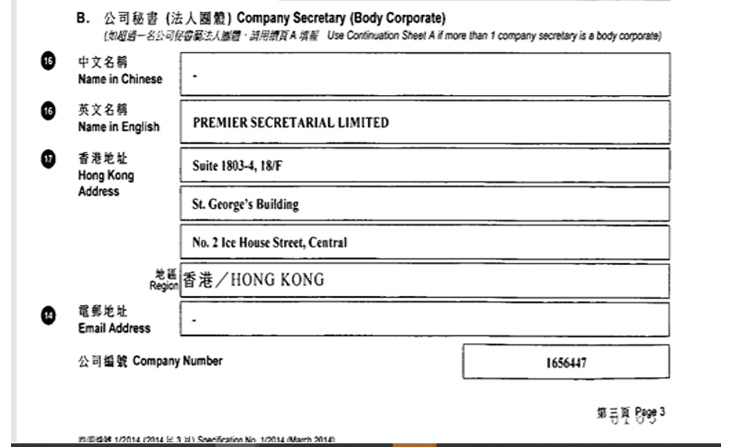 ส่วนเลขานุการของบริษัทนั้นปรากฏข้อมูลว่าเป็นบริษัท Premiere Secretarial Limited