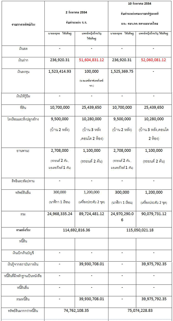 ตารางเปรียบเทียบรายการบัญชีทรัพย์สินและหนี้สิน นายยงยุทธ วิชัยดิษฐ