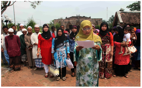 บรรยายภาพ : ญาติผู้เสียชีวิตในเหตุการณ์รุนแรงเมื่อวันที่ 28 เม.ย.2547 ที่มัสยิดกรือเซะ รวมตัวกันอ่านแถลงการณ์คัดค้านมติของคณะกรรมการเยียวยาผู้ได้รับผลกระทบสืบเนื่องจากสถานการณ์ความไม่สงบในจังหวัดชายแดนภาคใต้ ที่อนุมัติกรอบการจ่ายเงินแค่ 4 ล้านบาท ในขณะที่กลุ่มอื่นๆ ได้ 7.5 ล้าน (ภาพโดย อับดุลเลาะ หวังหนิ)