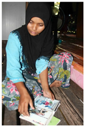 "ตอนนี้ก็ยังกรีดยางกับแม่อยู่ทุกวัน หลังจากแบ่งกับแม่แล้วก็มีรายได้วันละ 200 บาท ก็เอามาเลี้ยงลูกสาว ด.ญ.ตัสนิม เลาะสูหลง เป็นลูกสาวคนเดียว ตอนที่สามีเสียชีวิตเราท้องได้ 4 เดือน ตอนนี้ตัสนิมอายุ 8 ขวบ ก็เท่าๆ กับระยะเวลาที่พ่อของเขาจากไป"
