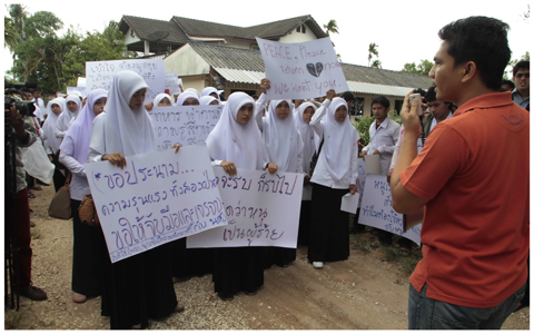 บรรยายภาพ : การชุมนุมของกลุ่มนักศึกษาจาก จ.ยะลา เมื่อต้นเดือน มิ.ย.ที่่ผ่านมา เพื่อเรียกร้องความเป็นธรรมให้กับเพื่อนนักศึกษาและนายนูรมาน ดอเลาะ หลังถูกทหารหน่วยเฉพาะกิจยะลา 11 จับกุม