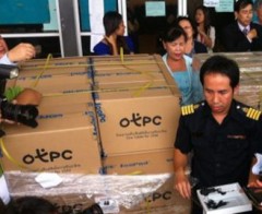 วันที่ 22 มิ.ย. 55 ที่คลังสินค้าสนามบินสุวรรณภูมิ นายชินภัทร ภูมิรัตน เลขาธิการคณะกรรมการการศึกษาขั้นพื้นฐาน (เลขาธิการ กพฐ.) เป็นตัวแทนไปตรวจรับมองแท็บเล้ตพีซีที่ถูกส่งมาจากประเทศจีนล็อคแรก พร้อมทั้งกล่าวว่า วันนี้แท็บเล็ตจำนวน10,000 เครื่อง 20 Carton น้ำหนัก 8,042 กิโลกรัมถูกส่งมาทางสายการบิน FedEx เที่ยวบินที่ FX 5779 จากเมืองเสิ่นเจิ้น ประเทศจีน ถึงสนามบินสุวรรณภูมิ เวลา 05.35 น.ของวันที่ 22 มิ.ย.55 ซึ่งโปรแกรมข้อมูลต่างๆถูกบรรจุมาเรียบร้อย โดยต่อจากนี้จะนำไปเก็บไว้ที่บริษัทพัสดุภัณฑ์ไทย ตรงข้ามกงศุลใหม่ ท่าเรือคลองเตย จากนั้นจะมีการตรวจเช็ตสภาพและจะทยอยส่งให้สำนักงานการศึกษาขั้นพื้นฐานเรียงตามตัวอักษร ก.ไก่ ตามที่ให้ข้อมูลไปก่อนหน้านี้ โดยเริ่มจากเขตการศึกษาที่1ของจังหวัดกระบี่ กรุงเทพมหานคร กาฬสินธุ์ และกาญจนบุรี ไล่ไปตามตัวอักษรจนครบก่อนจะกลับมาที่ตัวอักษรก.ไก่ในเขตที่ 2 ซึ่งมีการเปลี่ยนแผนการจัดส่งเล็กน้อย