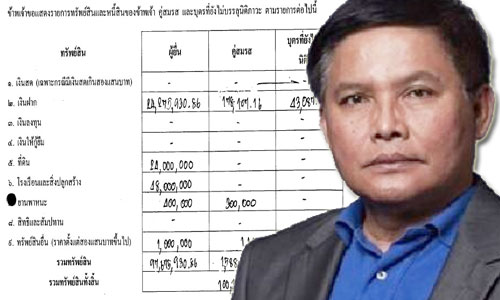 ตอนเป็น ส.ส. ปี 2550 มีทรัพย์สิน 72,472,593 บาท คู่สมรส 8,323,225 บาท รวม 80,795,818 บาท