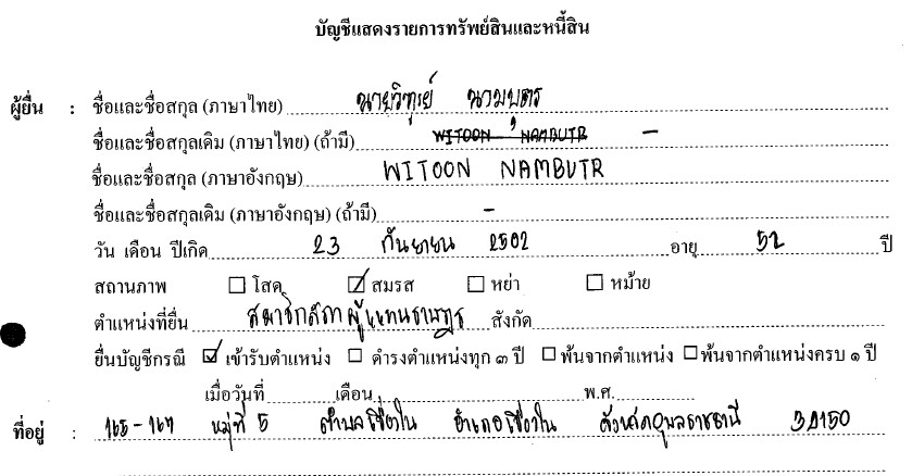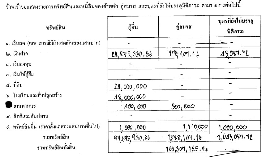 บุตรไม่บรรลนิติภาวะมีทรัพย์สิน 1,043,087.72 บาท ประกอบด้วยเงินฝาก 43,087.72 บาท ทรัพย์สินอื่น 1,000,000 บาท (พันธบัตรรัฐบาล)