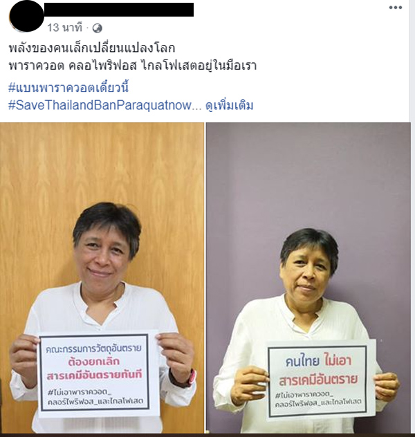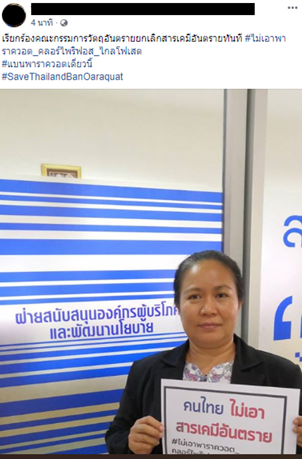 อ่านประกอบ:3 องค์กร ชวนติดแฮชแท็ก #ไม่เอาพาราควอต_คลอร์ไพริฟอส_และไกลโฟเสต เที่ยง 12 ก.พ.นี้
