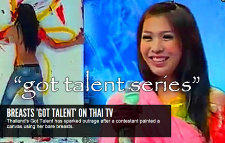 เหตุการณ์ผู้ประกวดสาวใช้เต้าและเรือนร่างวาดภาพ โดยอ้างว่าเป็นศิลปะในรายการโชว์ “Thailand’s got talent” ที่ออกอากาศทางช่อง 3 และตอนนี้ก็เป็นข่าวโด่งดังไปทั่วโลกแล้ว