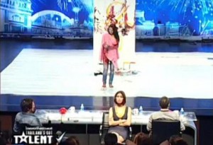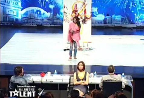 ยังมิทันจะได้คำตอบ เธอหันกลับไปยังผืนฝ้าใบ โยกเต้านมคลึงสัมผัสกับแผ่นภาพผ้าใบสีขาวตามจังหวะเสียงดนตรีเร้าอารมณ์ ท่ามกลางสายตาและเสียงโห่ร้องผู้ชมในห้องส่ง กรรมการหญิงคนหนึ่งกดไฟแสดงสัญลักษณ์กากบาทสีแดงแสดงว่าเธอไม่เห็นด้วยกับโชว์ที่ปรากฎตรงหน้า ขณะที่กรรมการชายอีก 2 ท่านตัดสินให้เธอผ่านรอบคัดเลือก โดยให้เหตุผลว่าและเชื่อว่าคืองานศิลปะ และสำทับอีกว่า “แค่กล้าก็ชนะแล้ว”