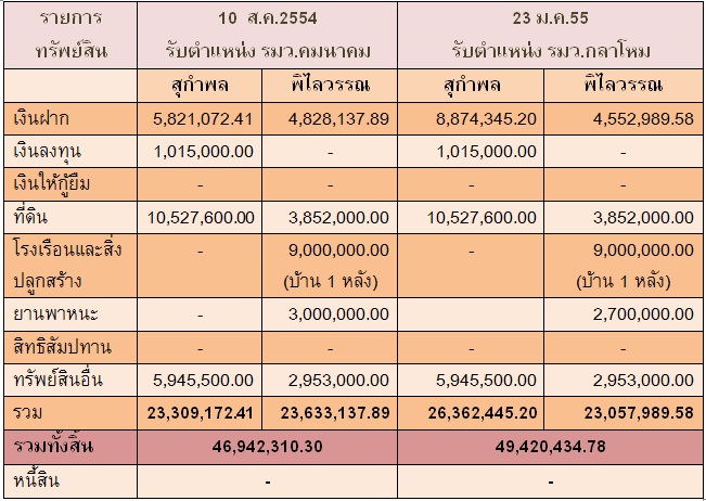 ทรัพย์สินของ พล.อ.อ.สุกำพล สุวรรณทัต และคู่สมรส