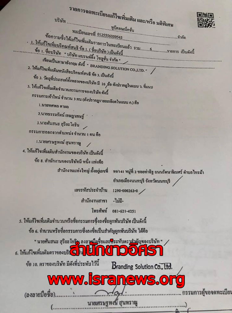 ต่อมาเมื่อวันที่ 27 เม.ย. 2561 ได้เปลี่ยนชื่อเป็น บริษัท แบรนด์ดิ้ง โซลูชั่น จำกัด แจ้งเปลี่ยนกรรมการใหม่ โดยนายเศรษฐพงษ์ ออกจากกรรมการ มีนายทศพล ตาผล นายธรรมรัตน์ เจษฎาเชษฐ์ และนายศันสนะ สุริยะโยธิน เข้ามาเป็นกรรมการชุดใหม่ (ดูเอกสารประกอบ)