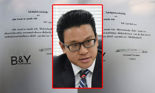 ต่อมาเมื่อวันที่ 7 ก.พ. 2555 เปลี่ยนชื่อบริษัทเป็น บริษัท บี แอนด์ วาย เจพี จำกัด โดยมีทุนบริษัทขณะนั้น 4 ล้านบาท มีการเปลี่ยนโครงสร้างผู้ถือหุ้นใหม่ นายเสมอกัน เที่ยงธรรม (ผู้สมัคร ส.ส.พรรคชาติไทยพัฒนา บุตรชายนายจองชัย เที่ยงธรรม อดีตนักการเมืองชื่อดัง ที่เพิ่งย้ายไปสังกัดพรรคภูมิใจไทย) ถือหุ้น 7,500 หุ้น มูลค่า 7.5 แสนบาท นายสกลธี ภัททิยกุล (ปัจจุบันเป็นรองผู้ว่าฯ กทม. และสมาชิกพรรคพลังประชารัฐ) ถือหุ้น 7,500 หุ้น มูลค่า 7.5 แสนบาท และบริษัท มาลาคี จำกัด ถือหุ้น 25,000 หุ้น มูลค่า 2.5 ล้านบาท (ดูเอกสารประกอบ)