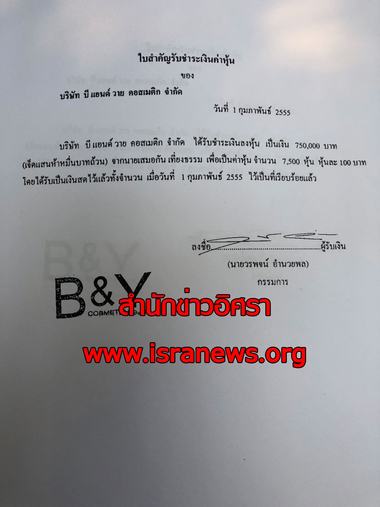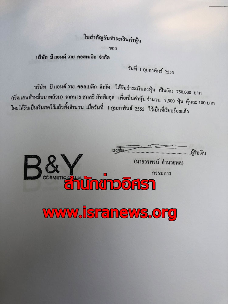 เมื่อวันที่ 14 มี.ค. 2562 สำนักข่าวอิศราตรวจสอบข้อมูลเชิงลึกจากกรมพัฒนาธุรกิจการค้า พบว่า บริษัทแห่งนี้ เมื่อก่อตั้งวันที่ 18 มิ.ย. 2553 ใช้ชื่อว่า บริษัท บี แอนด์ วาย คอสเมติก แจ้งประกอบธุรกิจขายเครื่องสำอางค์ มีนายวรพจน์ อำนวยพล เป็นกรรมการคนแรก และผู้ก่อตั้งบริษัทเมื่อวันที่ 18 มิ.ย. 2553 มีนายชินะวัฒน์ อำนวยพล นายพงษ์พัฒน์ รุ่งวานนท์ชัย และนางชนิดาภา จอง เป็นผู้ถือหุ้นชุดแรก