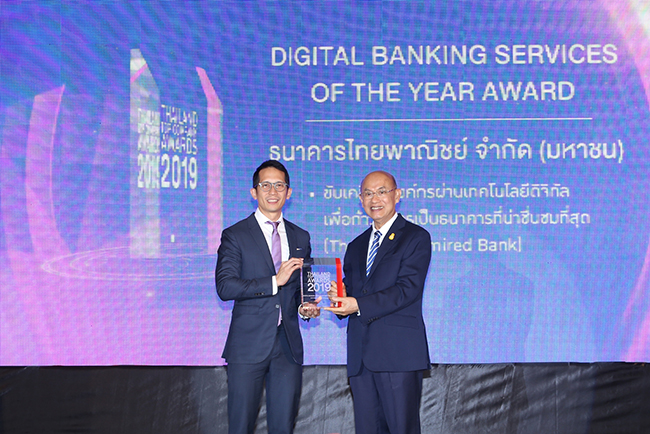 ธนาคารไทยพาณิชย์ ได้รับ รางวัล Thailand Top Company Awards 2019 รางวัลแห่งความเป็นเลิศประเภท Digital Banking Services of The Year Award ซึ่งจัดโดยนิตยสาร Business+ ร่วมกับ มหาวิทยาลัยหอการค้าไทย เป็นรางวัลอันทรงเกียรติที่มอบให้กับบริษัทที่ปรับโครงสร้างองค์กรสู่ดิจิทัล สร้างนวัตกรรมผลิตภัณฑ์ทางการเงินและช่องทางการให้บริการโดยใช้เทคโนโลยีได้เป็นอย่างดี รางวัลนี้สะท้อนให้เห็นถึงความสามารถของธนาคารในการขับเคลื่อนองค์กรผ่านเทคโนโลยีดิจิทัล เพื่อก้าวสู่การเป็นธนาคารที่น่าชื่นชมที่สุด (The Most Admired Bank) โดยมี นายธนา โพธิกำจร ผู้ช่วยผู้จัดการใหญ่ ผู้บริหารสูงสุดกลุ่มงาน Digital Platforms ธนาคารไทยพาณิชย์ เป็นผู้แทนธนาคารเข้ารับรางวัลจาก ฯพณฯ ศาสตราจารย์เกียรติคุณ นายแพทย์เกษม วัฒนชัย องคมนตรี ณ โรงแรมอินเตอร์คอนติเนนตัล กรุงเทพฯ