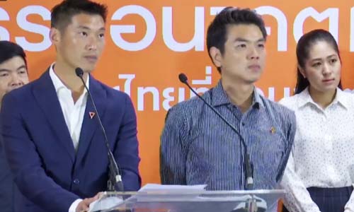 วันเดียวกัน นายธนาธร จึงรุ่งเรืองกิจ หัวหน้าพรรคอนาคตใหม่ เเละนายปิยบุตร เเสงกนกกุล เเถลงข่าวขอบคุณ 5.8 ล้านเสียง ที่สนับสนุนพรรคอนาคตใหม่ จนทำให้พรรคได้รับคะเเนนเสียงมากเป็นอันดับ 3 ณ ที่ทำการพรรคอนาคตใหม่