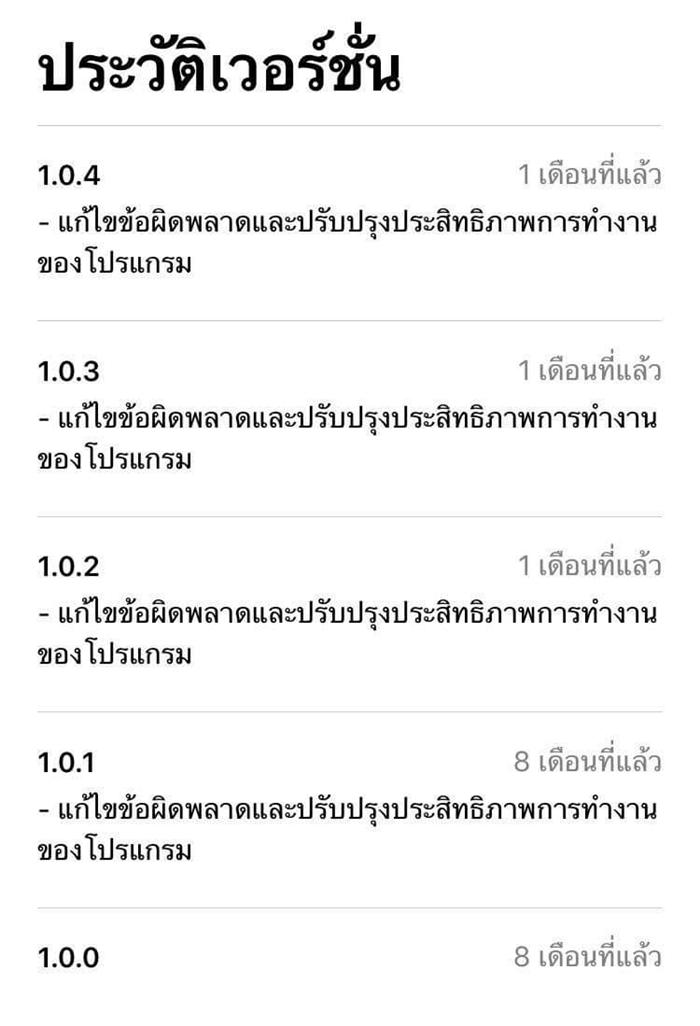 นอกจากนี้ ยังมีการตรวจสอบพบว่า มีการระบุประวัติการแก้ไขเวอร์ชั่นทั้งหมด 4 ครั้ง จากเวอร์ชั่น 1.0.0 , 1.0.1 , 1.0.2 , 1.0.3 ถึง 1.0.4 ตามลำดับ โดยระบุว่า “แก้ไขข้อผิดพลาดและปรับปรุงประสิทธิภาพการทำงานของโปรแกรม” เหมือนกันทั้ง 4 ครั้ง (ดูภาพประกอบท้ายข่าว)