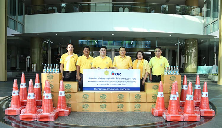 พีทีที โออาร์ สนับสนุนกรวยยางจราจร-น้ำดื่มคาเฟ่อเมซอนช่วงสงกรานต์