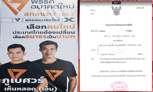 ซึ่งผู้ร้องยื่นคําร้องว่า ผู้ร้องประกาศรายชื่อผู้คัดค้านเป็นผู้สมัครรับเลือกตั้งเป็น สมาชิกสภาผู้แทนราษฎรแบบแบ่งเขตเลือกตั้ง เขตเลือก ตั้งที่ 2 จังหวัดสกลนคร พรรคอนาคตใหม่