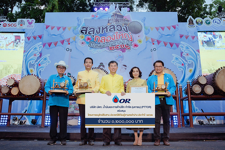 นางสาวจิราพร ขาวสวัสดิ์ ประธานเจ้าหน้าที่บริหารและกรรมการผู้จัดการใหญ่ บริษัท ปตท. น้ำมันและการค้าปลีก จำกัด (มหาชน) หรือ พีทีที โออาร์ และนายสุรพล บุรินทราพันธุ์ รองผู้ว่าราชการจังหวัดลำปาง ร่วมงาน “สลุงหลวง กลองใหญ่ ปีใหม่เมืองนครลำปาง ประจำปี 2562” และ “การประกวดการตีก๋องปู่จานครลำปาง” ชิงถ้วยพระราชทานสมเด็จพระนางเจ้าสิริกิติ์ พระบรมราชินีนาถ ในรัชกาลที่ 9 ซึ่งจัดต่อเนื่องมาเป็นปีที่ 18 ระหว่างวันที่ 9 – 13 เม.ย. 2562 ณ ข่วงนคร อำเภอเมืองลำปาง จังหวัดลำปาง เพื่อปลุกจิตสำนึกให้เยาวชนและผู้สนใจหันมาอนุรักษ์และสืบสานวัฒนธรรมประเพณีการตีก๋องปู่จาอันถือเป็นศิลปะอันทรงคุณค่าของชาวลำปาง อีกทั้งยังเป็นการส่งเสริมการท่องเที่ยวในช่วงเทศกาลปีใหม่ไทยอีกด้วย