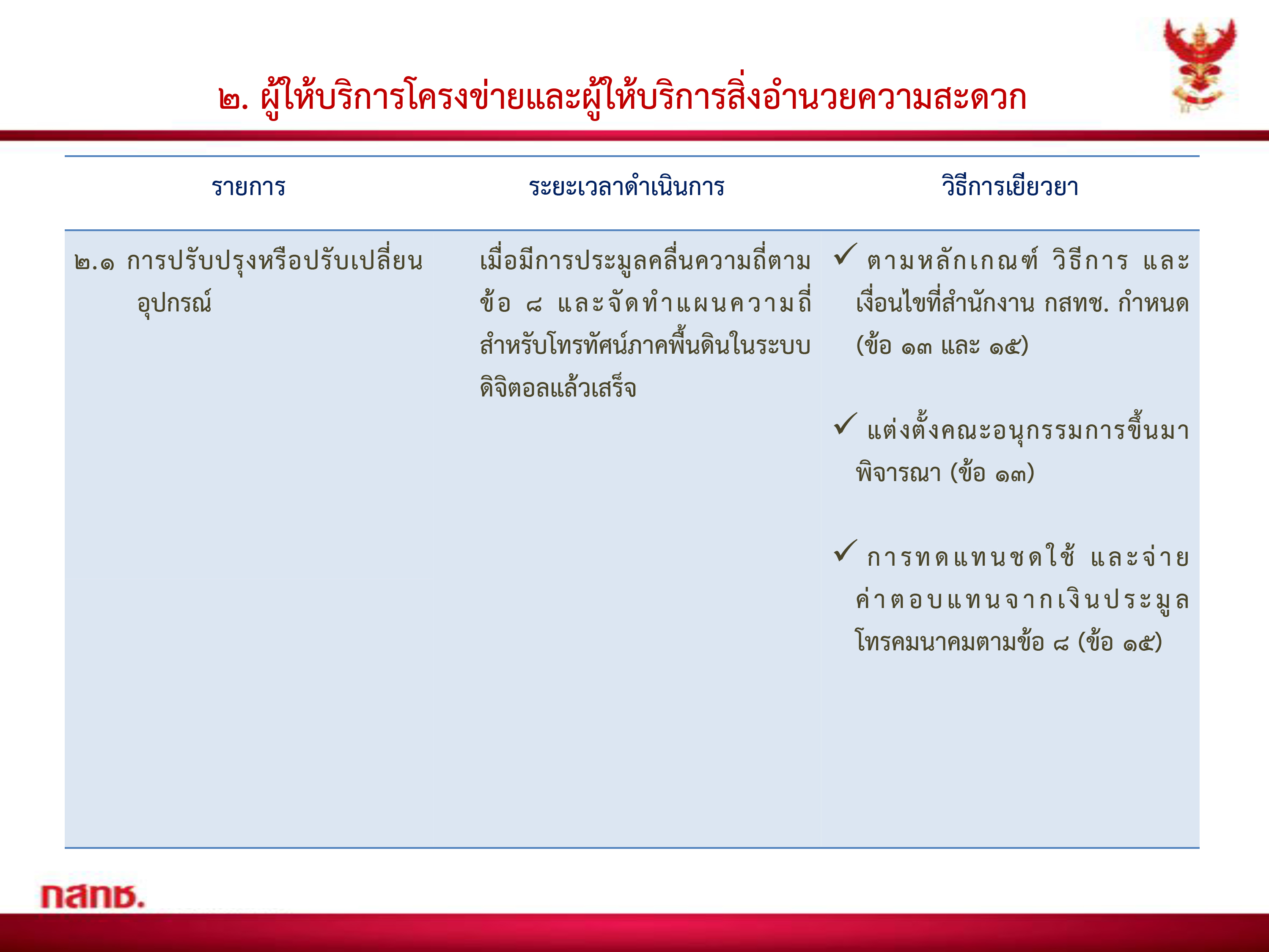 ส่วนของ ผู้รับใบอนุญาตให้ใช้คลื่นความถี่เพื่อให้บริการโทรทัศน์ในระบบดิจิทัลนั้น