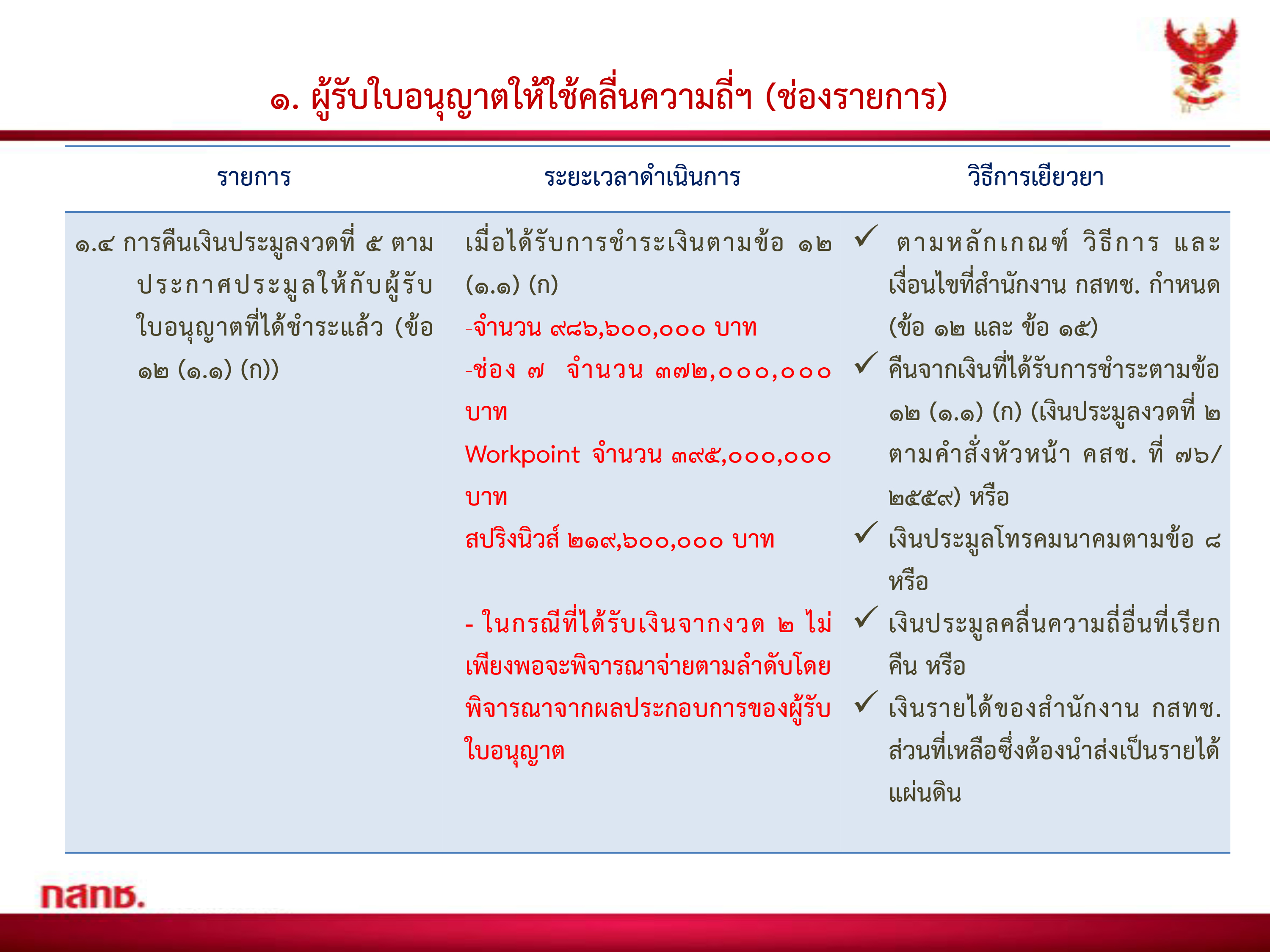 เปิดมาตรการ กสทช.รับคำสั่ง ม.44 ยืดจ่ายค่าคลื่น900 เป็น10 งวด -ช่วยทีวีดิจิทัล คืนใบอนุญาต