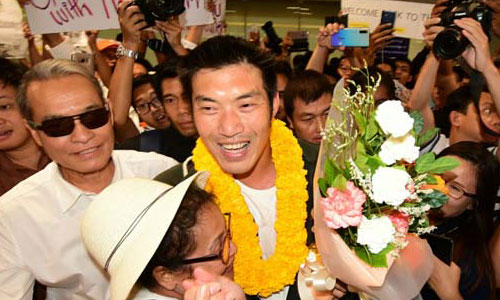 ผู้สื่อข่าวรายงานว่า สำหรับบรรยากาศการต้อนรับเป็นไปอย่างคึกคัก มีแกนนำพรรค สมาชิกพรรค และผู้สนับสนุนมารอต้อนรับ โดยทันทีที่นายธนาธรมาถึงจุดนัดพบ ผู้สนับสนุนพรรคต่างโห่ร้องแสดงความยินดี ตะโกน "ธนาธรสู้ๆ" พร้อมชูสามนิ้ว และมอบดอกไม้ให้กำลังใจ รวมถึงชูป้ายที่มีสัญลักษณ์พรรคอนาคตใหม่และข้อความว่า "Stand with Thanathorn" ซึ่งมีความหมายว่า "อยู่ข้างธนาธร"