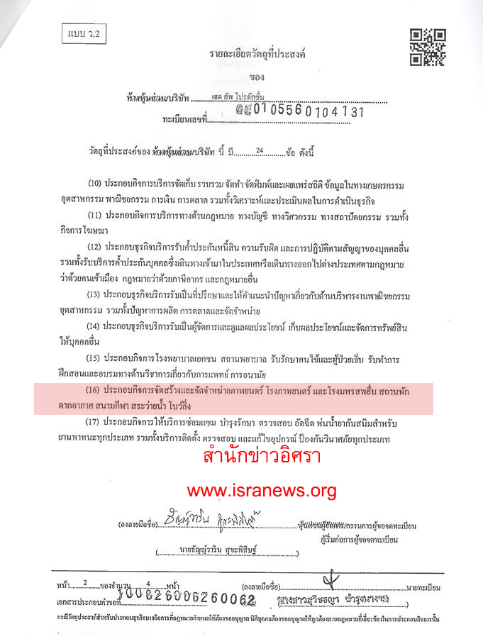 2.บริษัท เฮด อัพ โปรดักชั่น จำกัด จดทะเบียนวันที่ 26 มิ.ย. 2560 ทุน 1 ล้านบาท แจ้งวัตถุประสงค์ 24 ข้อ ใน ข้อ (10) ระบุ ประกอบกิจกรรมจัดเก็บ รวบรวม จัดทำ จัดพิมพ์และเผยแพร่สถิติ ข้อมูลในทางเกษตรกรรม อุตสาหรรม พาณิชยกรรม การเงิน การตลาด รวมทั้งวิเคราะห์และประเมินผลในการดำเนินธุรกิจ ข้อ (16) ประกอบกิจการจัดสร้างและจำหน่ายภาพยนตร์ โรงภาพยนตร์ และโรงมหรสพอื่น…. และในแบบนำส่งงบการเงินระบุประเภทธุรกิจ รับจ้างผลิตรายการโทรทัศน์ (ดูเอกสาร)