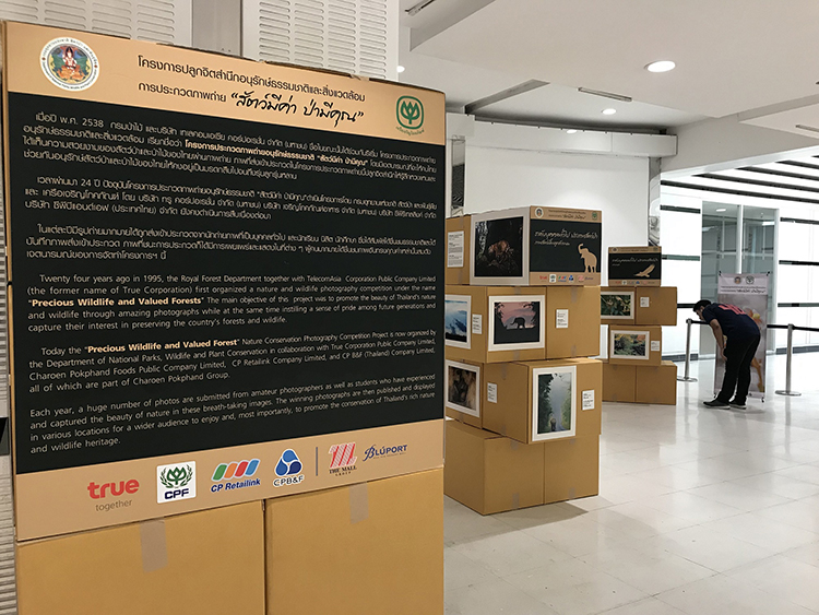 เครือเจริญโภคภัณฑ์ และกรมอุทยานแห่งชาติ สัตว์ป่า และพันธุ์พืช ร่วมกับบลูพอร์ต หัวหิน รีสอร์ท มอลล์ จัดนิทรรศการ “สัตว์มีค่า ป่ามีคุณ” รวบรวมผลงานภาพถ่ายสัตว์ป่า และป่าไม้ ในระดับบุคคลทั่วไป และระดับนักเรียน นิสิต นักศึกษา ร่วมเปิดโลกการรักษ์ธรรมชาติและสิ่งแวดล้อม พร้อมกับภาพถ่ายสัตว์ป่า และป่าไม้ได้ ตั้งแต่วันที่ 3 - 9 พ.ค. 2562 ณ บลูพอร์ต หัวหิน รีสอร์ท มอลล์ รายละเอียดเพิ่มเติมได้ที่เฟซบุ๊กแฟนเพจ สัตว์มีค่า ป่ามีคุณ