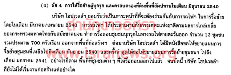 สอง การให้รื้อย้ายผู้บุกรุก และครอบครองที่ดินพื้นที่สัมปทานในเดือน มิ.ย. 2540