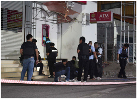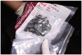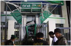 1-4 ความเสียหายและวัตถุพยานที่เก็บได้จากเหตุลอบวางระเบิดตู้เอทีเอ็มของธนาคาร 4 แห่งในเขตเทศบาลตำบลบันนังสตา จ.ยะลา (ภาพโดย อะหมัด รามันห์สิริวงศ์)