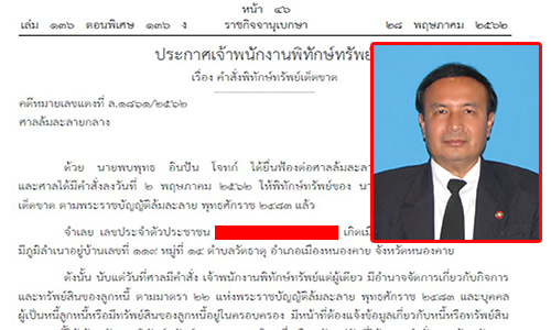ศาลสั่งพิทักษ์ทรัพย์‘พงศ์พันธ์’อดีต ส.ส.หนองคาย-ติดหนี้เจ้าของร้านพระเครื่องหลักล้าน