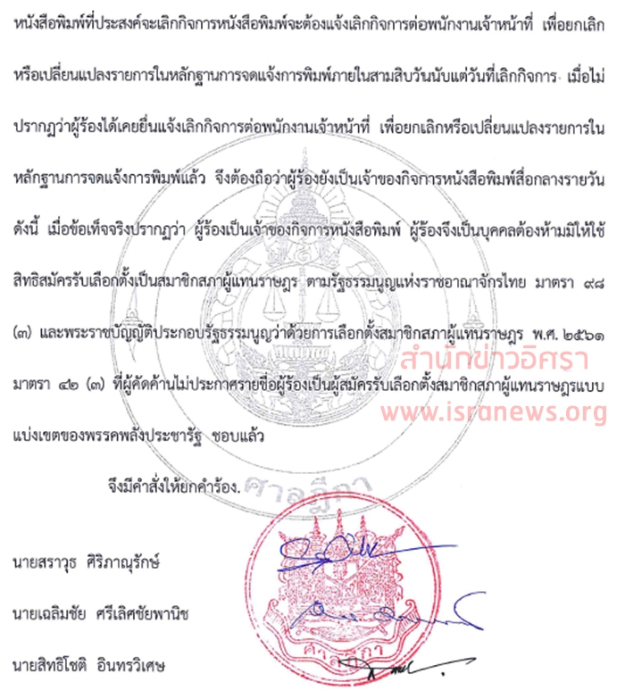 ฉบับเต็ม! คำพิพากษาศาลฎีกาคดี ‘ภูเบศวร์’ ถือหุ้นสื่อ ไม่มีสิทธิสมัครรับเลือกตั้ง ส.ส.