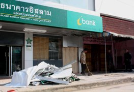5 บรรยากาศที่หน้าธนาคารอิสลามฯ สาขาบันนังสตา ช่วงที่เปิดให้บริการวันแรกเมื่อวันจันทร์ที่ 16 ก.ค.ที่ผ่านมา หลังถูกลอบวางระเบิดตู้เอทีเอ็มเมื่อคืนวันศุกร์ที่ 13
