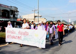 6-7 ชาวบ้านและนักเรียนในเขตเทศบาลตำบลบันนังสตา เดินขบวนพร้อมชูป้ายผ้าต่อต้านการก่อเหตุรุนแรงของกลุ่มผู้ไม่หวังดี (ภาพชุดจากบันนังสตา โดย อะหมัด รามันห์สิริวงศ์)