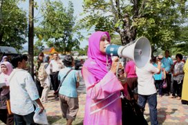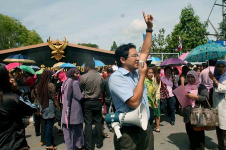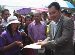 1-4 การรวมตัวกันของทายาทและครอบครัวผู้สูญเสียจากเหตุการณ์ความไม่สงบในจังหวัดชายแดนภาคใต้ที่บริเวณหน้า ศอ.บต. เพื่อเรียกร้องให้รัฐบาลจ่ายเงินเยียวยาอย่างเป็นธรรม โดยมี พ.ต.อ.ทวี สอดส่อง เลขาธิการ ศอ.บต. ลงมาพบและรับข้อเรียกร้องด้วยตนเอง (ภาพชุดนี้โดย อับดุลเลาะ หวังหนิ และ อะหมัด รามันห์สิริวงศ์)