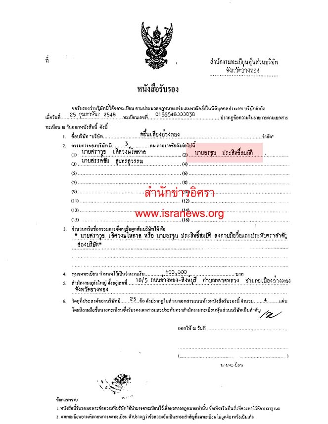 คราวนี้มาดูบริคณห์สนธิ รายละเอียดของวัตุประสงค์ และการถือหุ้นในบริษัท คลื่นเสียงอ่างทอง จำกัด ชนวนแห่งคดีดังนี้