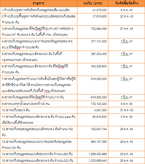 รายการเช่ารถเก็บขยะของกรุงเทพฯ จากบริษัท อิทธิพร อิมปอร์ต จำกัด