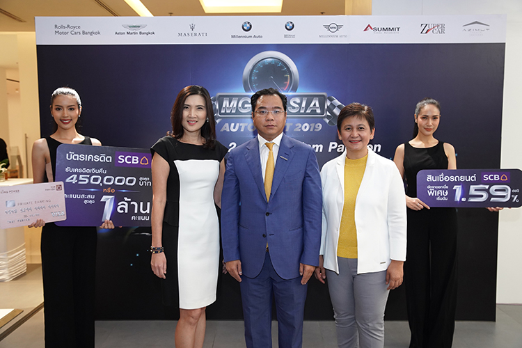 ธนาคารไทยพาณิชย์ ร่วมกับ บริษัท มาสเตอร์ กรุ๊ป คอร์ปอเรชั่น (เอเชีย) จำกัด หรือ เอ็มจีซี–เอเชีย เตรียมมอบเอกสิทธิ์สุดพิเศษมากมายให้กับลูกค้าบัตรเครดิตไทยพาณิชย์ และลูกค้าสินเชื่อรถยนต์ ในงาน MGC-ASIA Auto Fest 2019 ซึ่งจัดขึ้นระหว่างวันที่ 27 มิ.ย. – 2 ก.ค. 2562 ณ ศูนย์การค้าสยามพารากอน สำหรับลูกค้าบัตรเครดิตไทยพาณิชย์ รับเครดิตเงินคืนรวมสูงสุด 450,000 บาท หรือ รับคะแนนสะสม SCB Rewards / M Point สูงสุด 1,000,000 คะแนน โดยสิทธิพิเศษสามารถแบ่งได้เป็น 2 ต่อ สิทธิพิเศษแรก เลือกรับเครดิตเงินคืนสูงสุด 300,000 บาท หรือ คะแนนสะสม SCB Rewards / M Point สูงสุด 1,000,000 คะแนน เมื่อชำระเงินจองภายในงานฯ ผ่านบัตรเครดิตไทยพาณิชย์ สิทธิพิเศษสอง ใช้คะแนน SCB Rewards แลกรับเครดิตเงินคืนสูงสุด 15% (รับเครดิตเงินคืนสูงสุด 150,000 บาท) โดยทุก 10,000 คะแนนแลกเป็นเครดิตเงินคืน 10% และรับเครดิตเงินคืนเพิ่มอีก 5% เมื่อสมัครสินเชื่อรถยนต์ใหม่และทำสัญญากับธนาคารไทยพาณิชย์ ภายใน 31 ก.ค. 2562 นอกจากนี้ยังเตรียมสิทธิพิเศษสำหรับลูกค้าสินเชื่อรถยนต์ รับอัตราดอกเบี้ยพิเศษเพียง 1.59% ต่อปี โดยมี นางอนิสา ชูจันทร์ ผู้ช่วยผู้จัดการใหญ่ ผู้บริหารสายงานผลิตภัณฑ์บัตรเครดิต (ซ้าย) นางกนกวรรณ ใจศรี ผู้ช่วยผู้จัดการใหญ่ ผู้บริหารสายงาน Retail Lending Sales (ขวา) ธนาคารไทยพาณิชย์ และ ดร.สัณหวุฒิ ธรรมชวนวิริยะ กรรมการผู้จัดการใหญ่ กลุ่มบริษัท มาสเตอร์กรุ๊ป คอร์ปอเรชั่น (เอเชีย) จำกัด (กลาง) ร่วมเปิดตัวแคมเปญ เมื่อเร็วๆ นี้