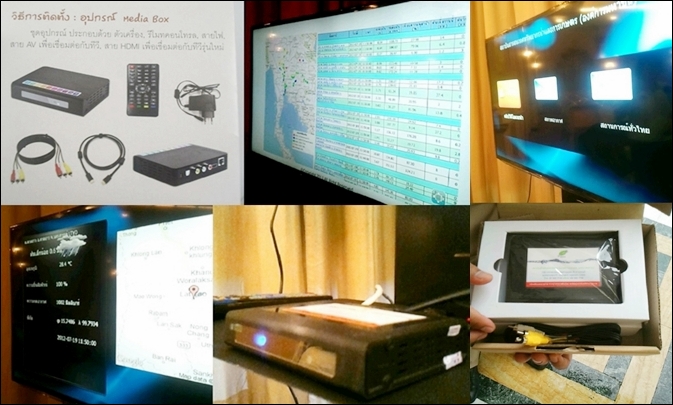 ทั้งนี้ เจ้าหน้าที่ สสนก.ได้อธิบายถึงวิธีการใช้งานและระบบรายงานข้อมูลของ Media Box ว่า เป็นกล่องข้อมูลที่ให้ประชาชนติดตามสภาพอากาศในปัจจุบันและข้อมูลคาดการณ์สภาพอากาศล่วงหน้าด้วยเทคโนโลยี RSS News Feed โดยต้องเชื่อมต่อกับระบบอินเตอร์เน็ต ควบคุมด้วยรีโมทและเชื่อมต่อเพื่อแสดงผลกับจอโทรทัศน์ได้ทั้งแบบซีอาร์ที จอพลาสม่า จอแอลวีดีหรือเครื่องฉายโปรเจคเตอร์