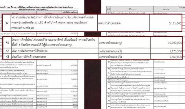 รายการที่ 37 โครงการเพิ่มประสิทธิภาพการใช้พลังงานโดยการปรับเปลี่ยนหลอดไฟชนิดหลอดประหยัดพลังงาน LED สำหรับไฟส่องสว่างสาธารณะในเขตเทศบาลตำบลปะแต ในอำเภอยะหา จังหวัดยะลา ได้ไป 5.1 ล้านบาท