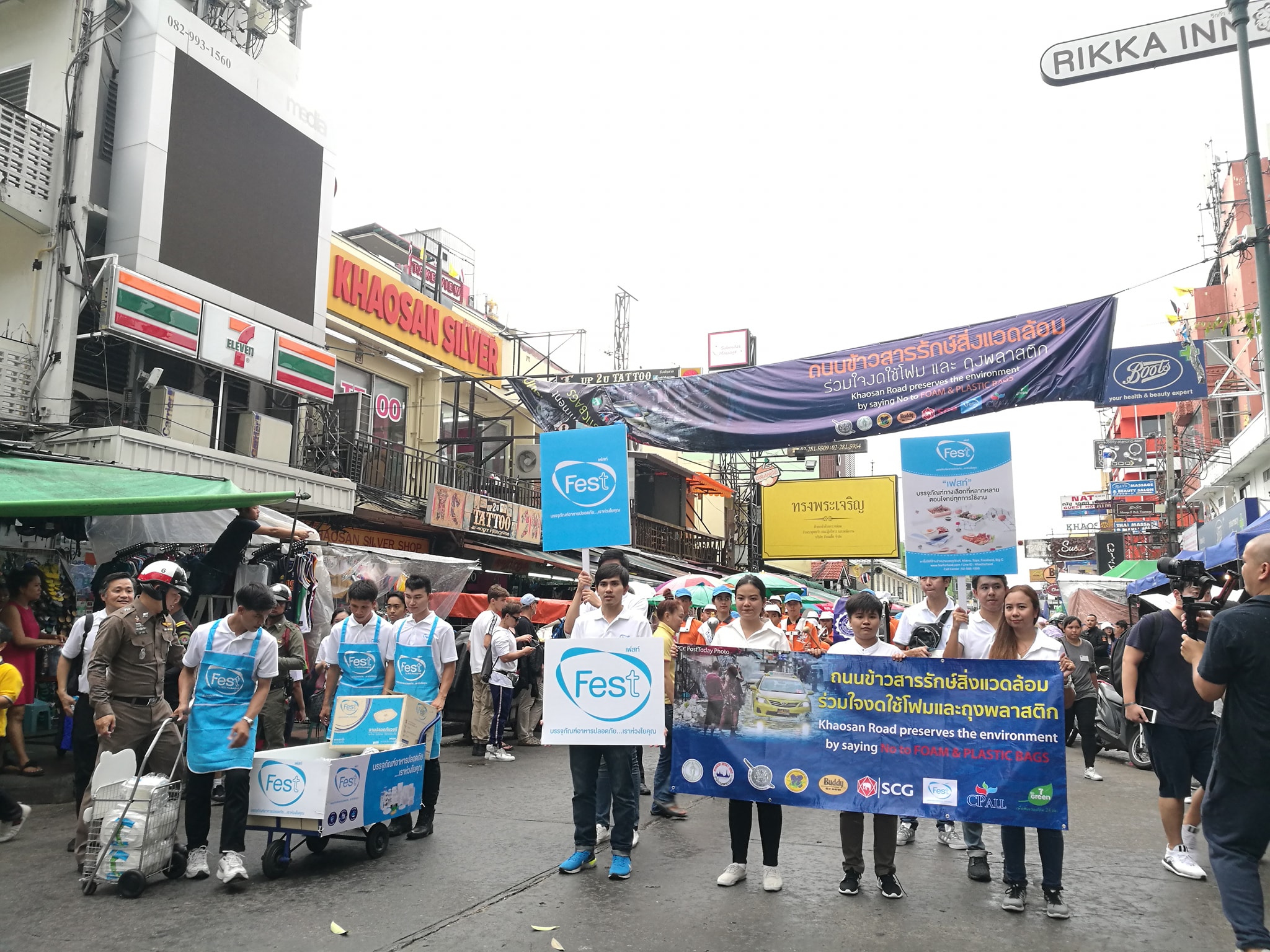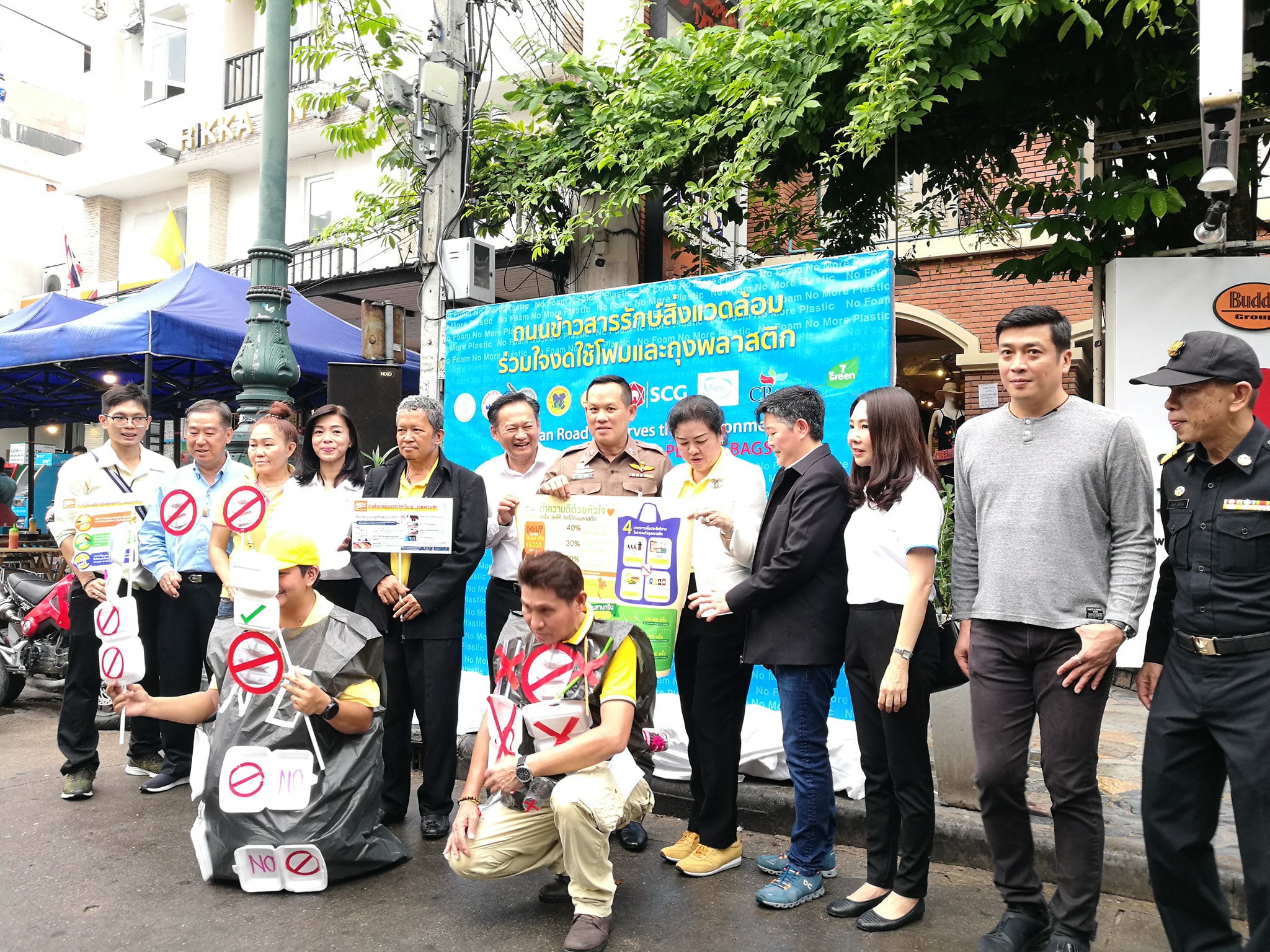 วันที่ 2 กรกฎาคม นายสง่า เรืองวัฒกุล นายกสมาคมผู้ประกอบธุรกิจถนนข้าวสาร ร่วมกับเขตพระนคร สถานีตำรวจชนะสงคราม และองค์กรเอกชน ได้แก่ นางวิมล จันทร์เทียร ผู้อำนวยการแบรนด์บรรจุภัณฑ์อาหารปลอดภัยเฟสท์ บริษัทผลิตภัณฑ์กระดาษไทย จำกัด ในธุรกิจแพคเกจจิ้ง เอสซีจี และ 7-eleven ตลอดจนประชาชนเปิดโครงการ "ถนนข้าวสารรักษ์สิ่งแวดล้อม" ร่วมใจงดใช้โฟม และถุงพลาสติก เพื่อสร้างการเปลี่ยนแปลงให้ถนนข้าวสาร ผ่านการรณรงค์สร้างจิตสำนึก และการจัดอบรมให้แก่ผู้ประกอบการร้านค้าบนถนนข้าวสาร ในการลดการใช้ถุงพลาสติกและกล่องโฟมใส่อาหาร หรือหันมาใช้บรรจุภัณฑ์ทางเลือกที่เป็นมิตรต่อสิ่งแวดล้อม