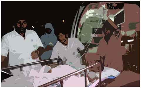บรรยายภาพ : ผู้บาดเจ็บจากเหตุรุนแรงในช่วงเดือนรอมฎอนถูกส่งไปรักษาตัวยังโรงพยาบาลศูนย์ยะลา เป็นภาพความรุนแรงอันชินชาที่เกิดขึ้นในสามจังหวัดชายแดนภาคใต้ (ภาพโดย อะหมัด รามันห์สิริวงศ์ พรางภาพเพื่อรักษาสิทธิผู้ป่วย/ผู้บาดเจฺ็บ โดย ฝ่ายศิลป์ ทีมข่าวอิศรา)