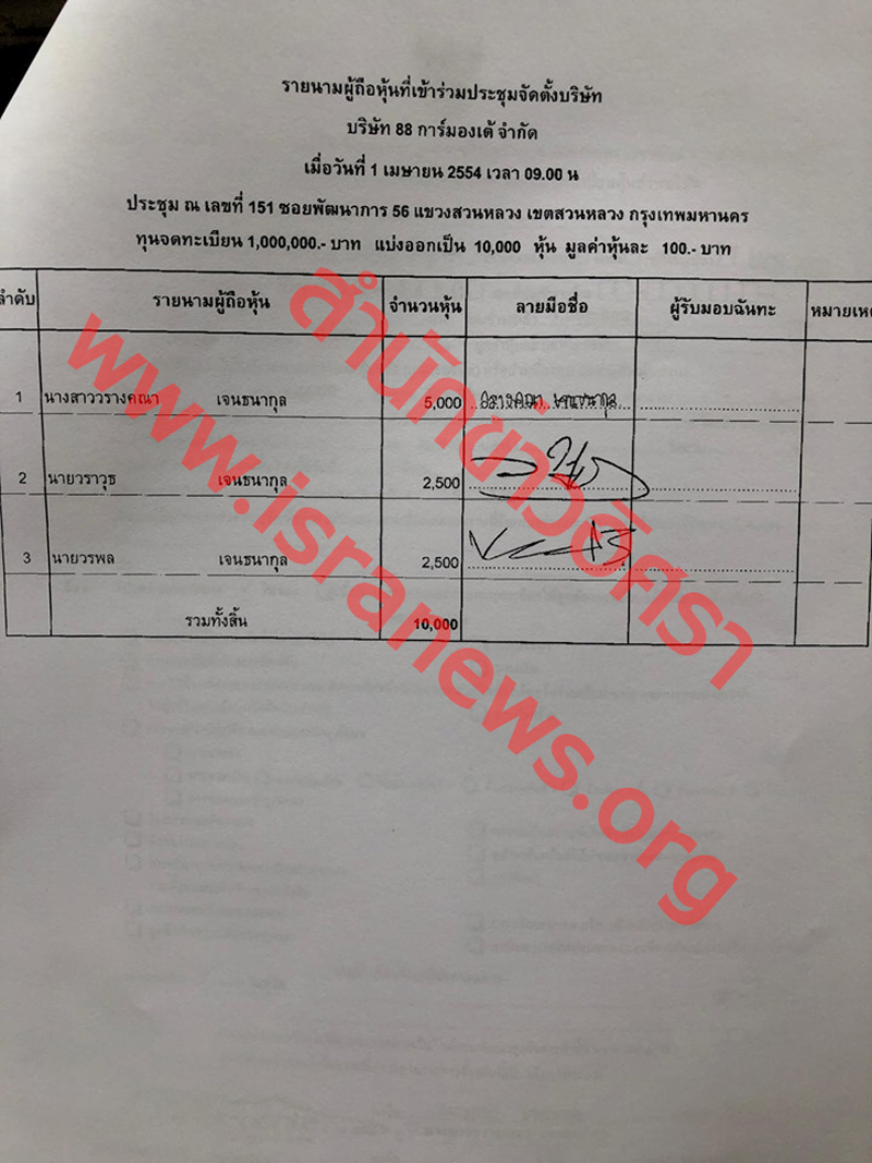 ปรากฏชื่อ น.ส.วรางคณา เจนธนากุล นายวราวุธ เจนธนากุล และนายวรพล เจนธนากุล เป็นกรรมการ