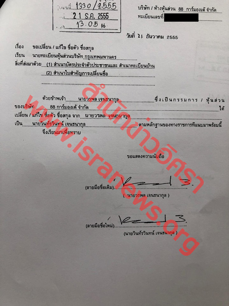 ทั้งนี้เมื่อวันที่ 21 ธ.ค. 2555 นายวรพล เจนธนากุล แจ้งต่อกรมพัฒนาธุรกิจการค้า เปลี่ยนชื่อ เป็นนายวินท์รวินทน์ เจนธนากุล ต่อมาเมื่อวันที่ 29 ก.ย. 2557 นายวินท์รวิทน์ เจนธนากุล แจ้งกรมพัฒนาธุรกิจการค้ากลับไปใช้ชื่อเดิมว่า นายวรพล เจนธนากุล