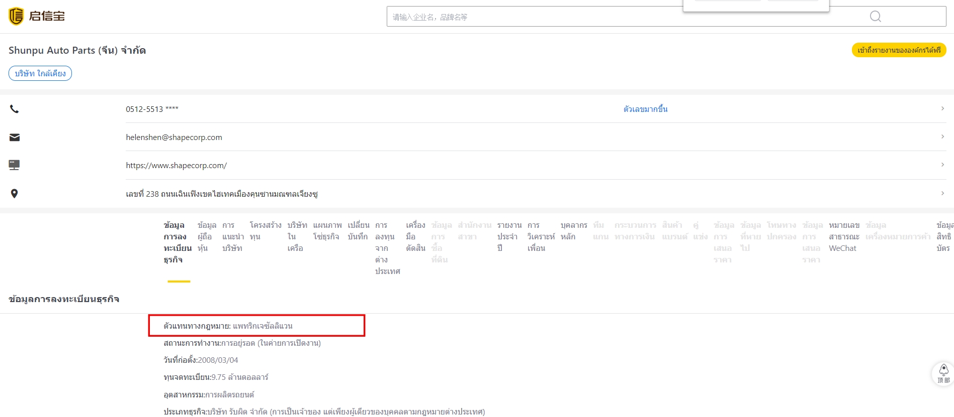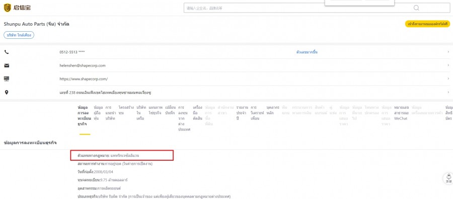 สำหรับข้อมูล นายแพทริค เจ ซัลลิแวน ที่ปรากฎชื่อเป็นหนึ่งในกรรมการ บริษัท ไทยซัมมิท เชป คอร์ป จำกัด นั้น จากการตรวจสอบข้อมูลในเว็บไซต์ฐานธุรกิจบริษัทประเทศจีน (https://m.qixin.com/company/c8b5f285-922e-4baa-b820-96b1cd9a71a4) พบว่า นายแพทริค ปรากฎชื่อเป็นตัวแทนทางกฎหมายของบริษัท Shunpu Auto Parts ทำธุรกิจผลิตรถยนต์ที่มีฐานการผลิตในประเทศจีน (ดูข้อมูลประกอบ)