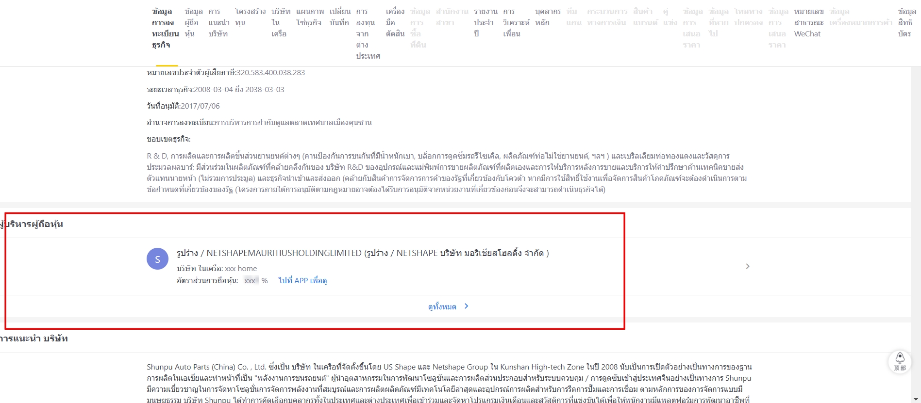 ขณะที่ บริษัท เชป เนทเชป มอริเชียส โฮลดิ้ง ปรากฎชื่อเป็นผู้ถือหุ้นบริษัทผลิตรถยนต์แห่งนี้ด้วย