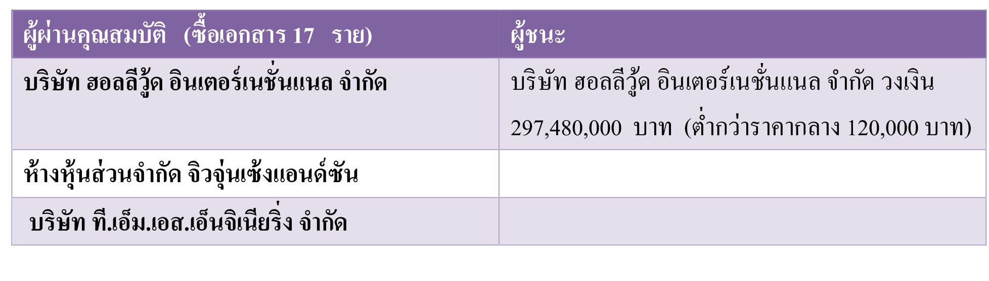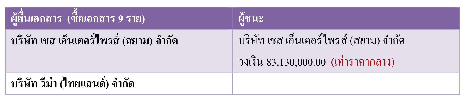 รายการที่ บริษัท เชส เอ็นเตอร์ไพรส์ (สยาม) จำกัด เป็นผู้ชนะ