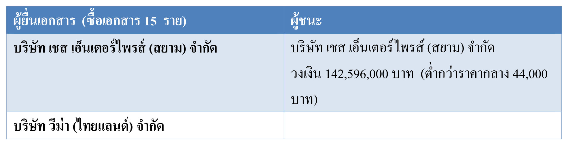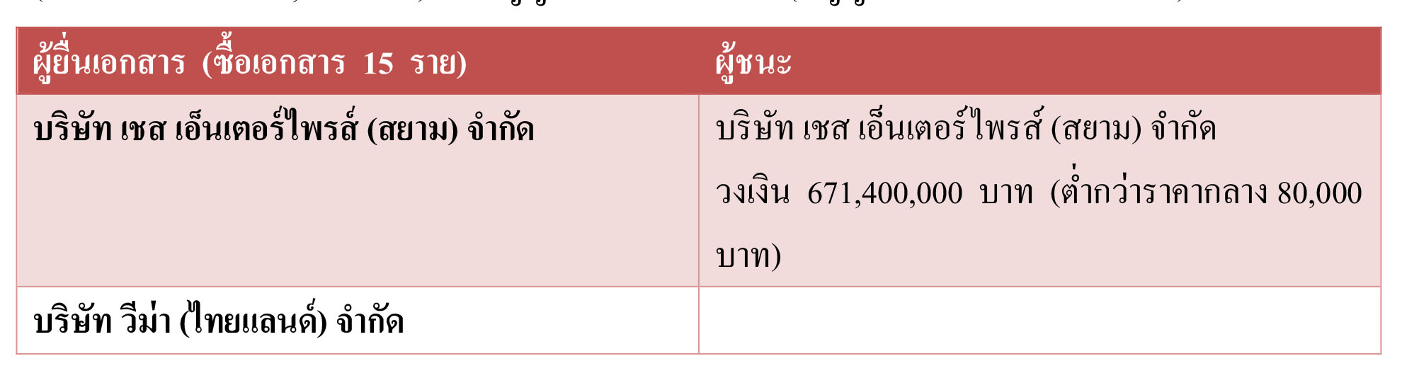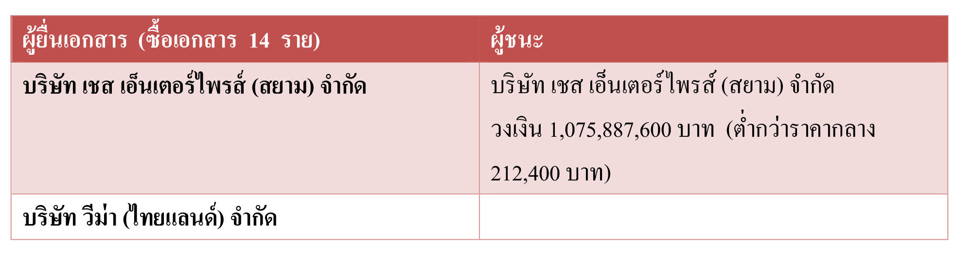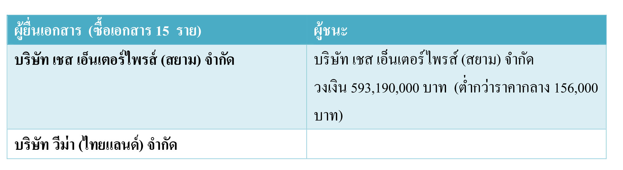 โดยมีบริษัท เชส เอ็นเตอร์ไพรส์ สยาม จำกัด เป็นบริษัทเอกชนผู้ได้รับงานเพียงรายเดียว