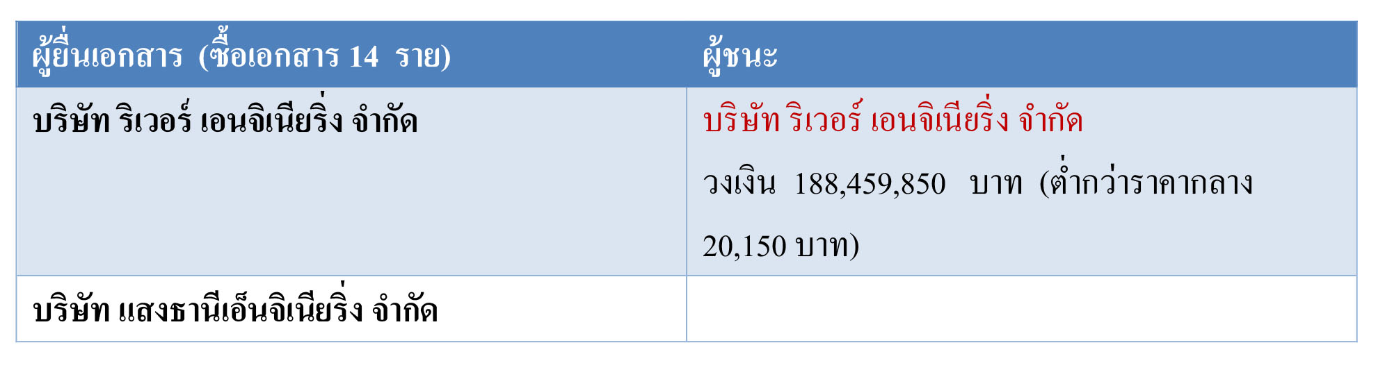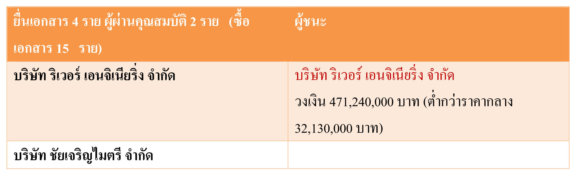 รายการที่ บริษัท ริเวอร์ เอนจิเนียริ่ง จำกัด เป็นผู้ชนะ 2 รายการ