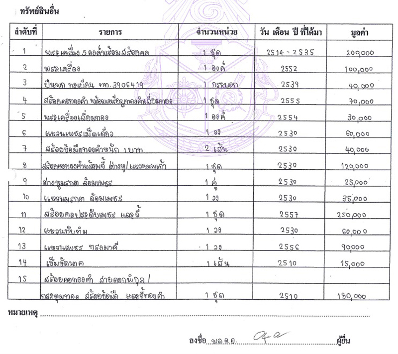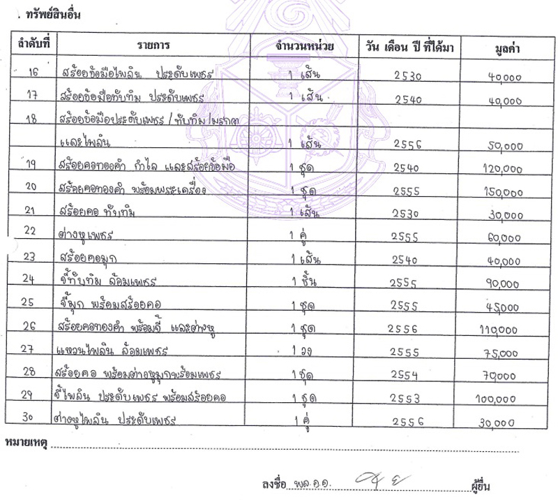 ส่วนทรัพย์สินอื่น ๆ ของ พล.อ.อ.ตรีทศ และ พล.อ.ท.หญิง อุดมลักษณ์ มีทั้งหมด 45 รายการ ส่วนใหญ่เป็นเครื่องประดับ และพระเครื่อง รวมมูลค่า 3,626,500 บาท