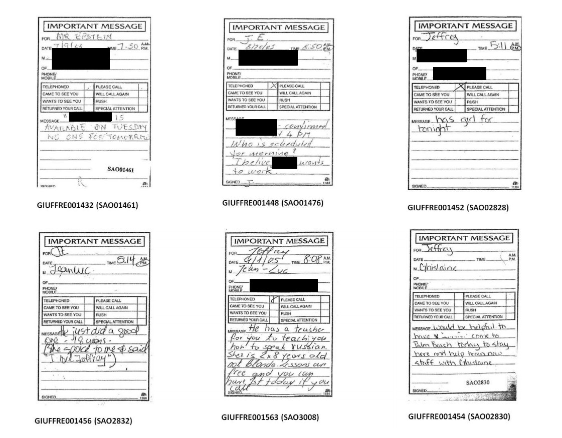 จากการเข้าตรวจค้นบ้านของนายเจฟฟรี พนักงานสอบสวนยังได้พบกระดาษข้อความซึ่งเขียนโดยพนักงานของนางกีเลนเพื่อแจ้งข้อมูลให้แก่นางกีเลนทราบตารางเด็กหญิงที่จะเข้ามาในบ้าน