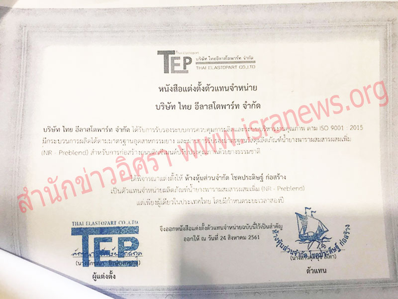 จุดที่น่าสังเกตข้อมูลส่วนนี้ คือ ห้างหุ้นส่วนจำกัด (หจก.) โชคประดิษฐ์ก่อสร้าง แจ้งทำธุรกิจหลัก คือ รับเหมาก่อสร้าง เพิ่งได้รับแต่งตั้งเป็นตัวแทนจำหน่ายสินค้าของ บริษัท ไทย อีลาสโตพาร์ท จำกัด ในวันที่ 24 ส.ค. 2561 หลังการสืบราคากลางงานดังกล่าว (file:///C:/Users/com/Desktop/การจัดซื้อน้ำยาง-Pre-blended.pdf)